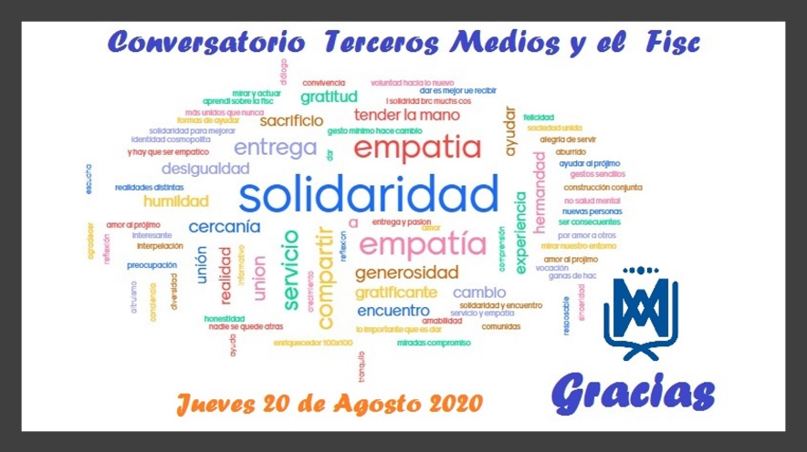 En el contexto de celebración del Mes de la Solidaridad Emocional, este año nos reunimos con los jóvenes de I a III Medio de los Colegios Compañía de María Chile y laHna. Blanca González ODN, directora del Fondo internacional de Solidaridad de la Orden con sede en Madrid, España y su Equipo de colaboradores entre ellosÁngel Fernández y educadores Voluntarios de los Colegios de España, con el objeto de conocer la labor dela Fundación Internacional de Solidaridad de la Compañía de María.