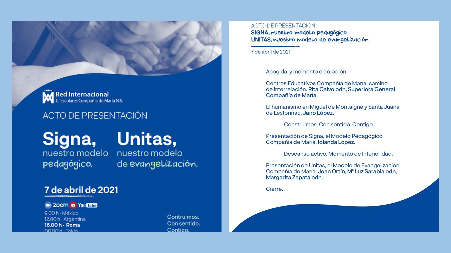 Nos encontramos este miércoles 07 de abril a las 10:00 horas en el lanzamiento mundial del Modelo Pedagógico: SIGNA y el Modelo de Evangelización: ÚNITAS, a través del Canal de YouTube Lestonnac ODN: https://bit.ly/3c3trgW
