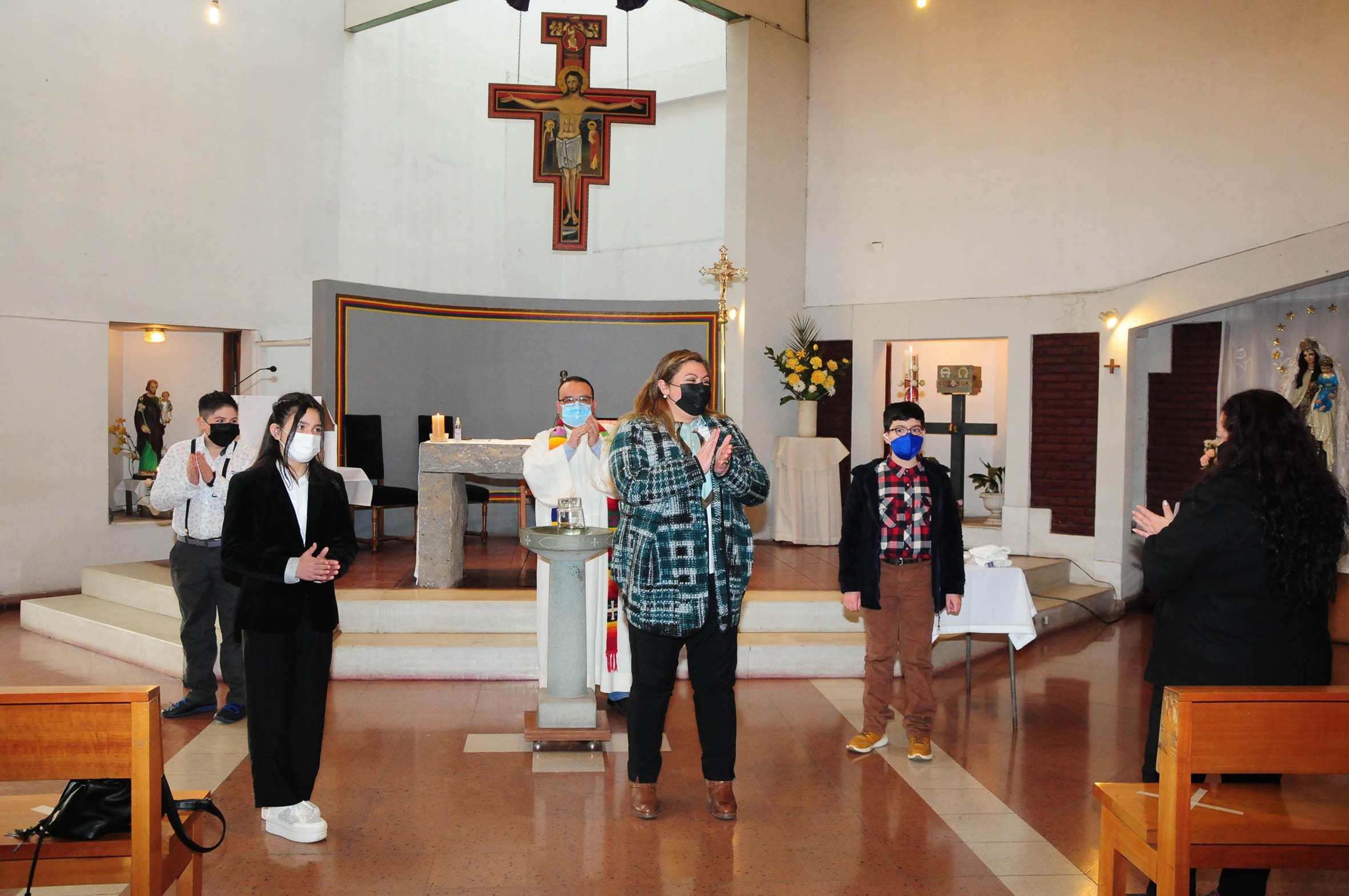 Compartimos con ustedes con alegría que el viernes 03 de Septiembre, acompañamos en la celebración del Sacramento del Bautismo a 3 de nuestros estudiantes de 5° Básico: Antonia Meneses, Jorge Navarro, Rafael Troncoso y a nuestra Subdirectora de Formación y Convivencia: Jocelyn Urrutia. Felicitamos a nuestros bautizados y a sus familias.
