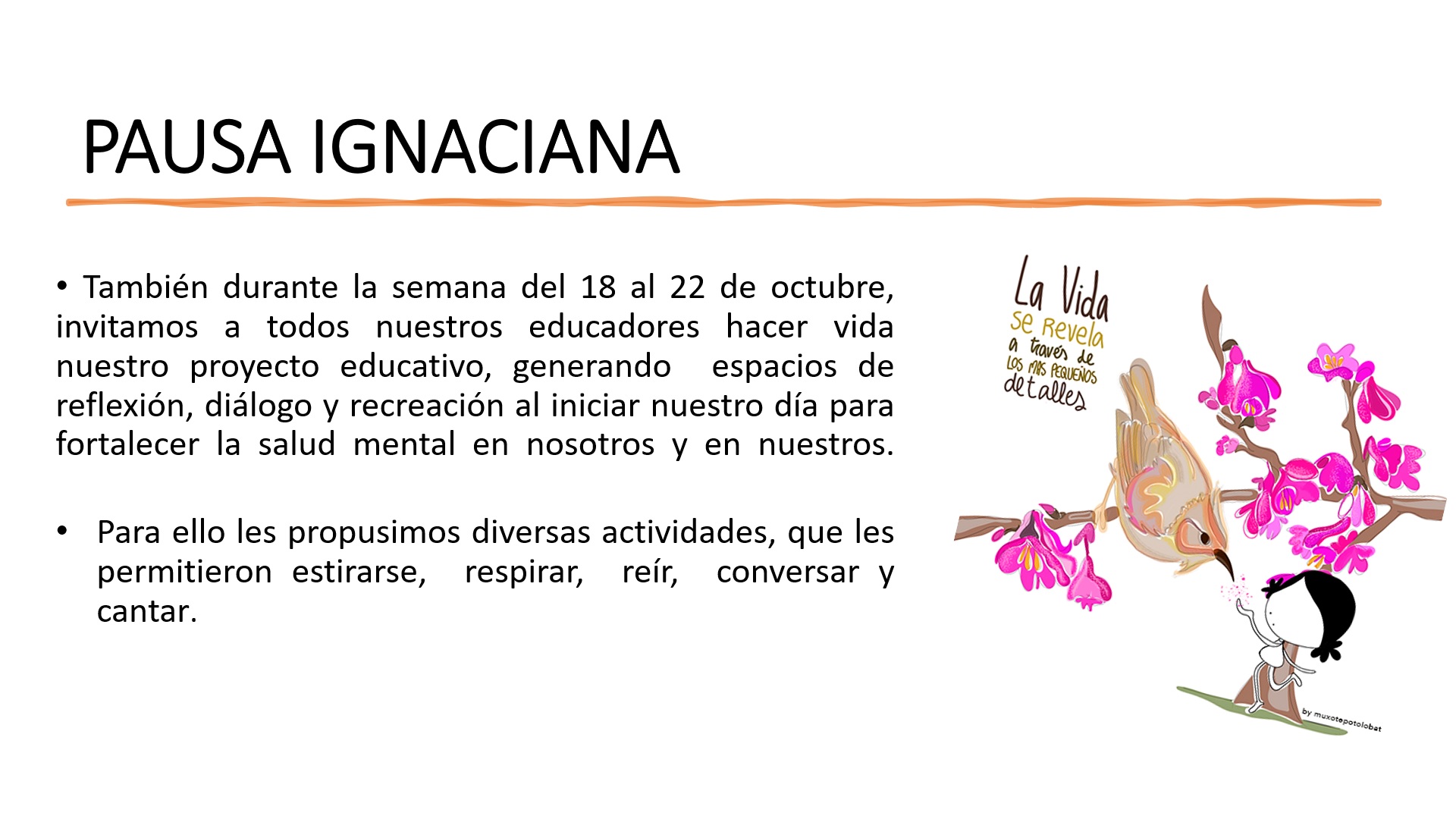 En el contexto de celebración del Mes de la Salud Mental, bajo el lema: “En Compañía fortalecemos nuestra Salud Mental”, como colegio hemos realizado un camino de reflexión y toma de conciencia en torno a la importancia de mantener un sano equilibrio de nuestro cuerpo y de nuestra mente.
