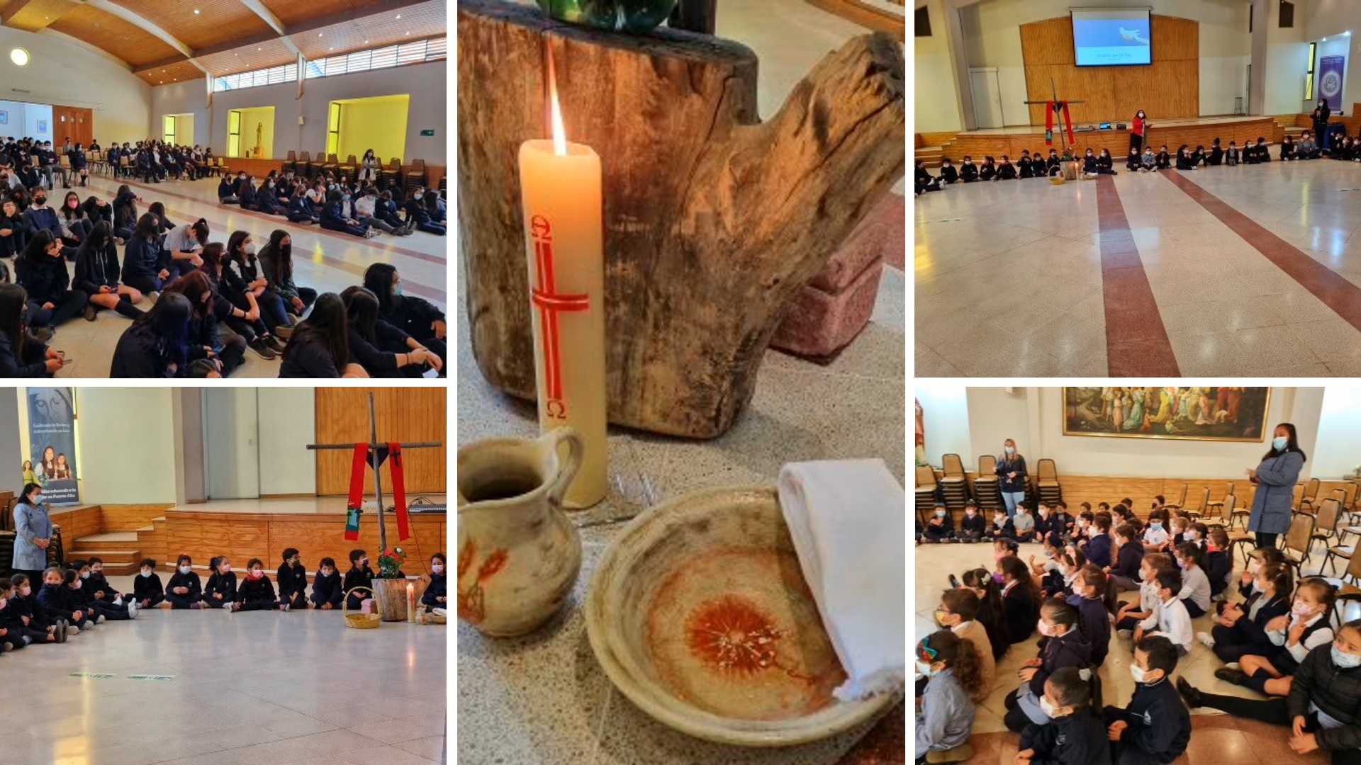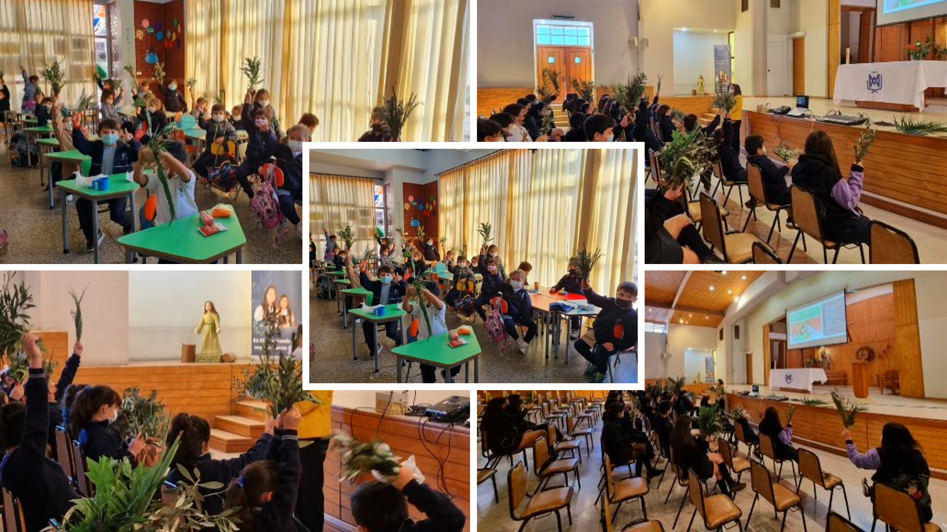 Iniciamos la semana con la Bendición de Ramos con las/los estudiantes Delegadas y Delegados de Pastoral de 1° Básico a IV Medio.