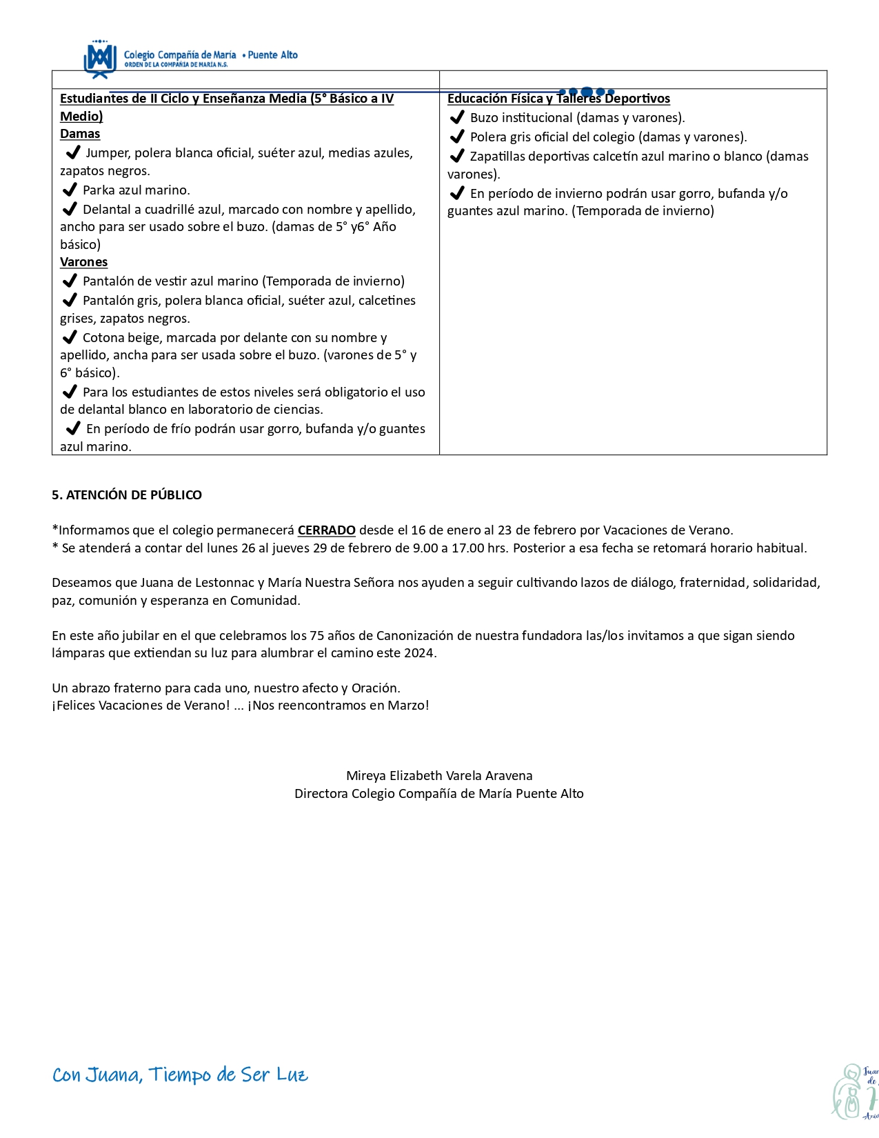 El jueves 04 de enero, como Comunidad Educativa, celebramos y agradecemos la vocación, el servicio educativo de nuestra querida Rosita Córdova…en manos del Señor ponemos tu vida…y el camino que emprendes con tu familia y amigos…esta siempre será tu casa.