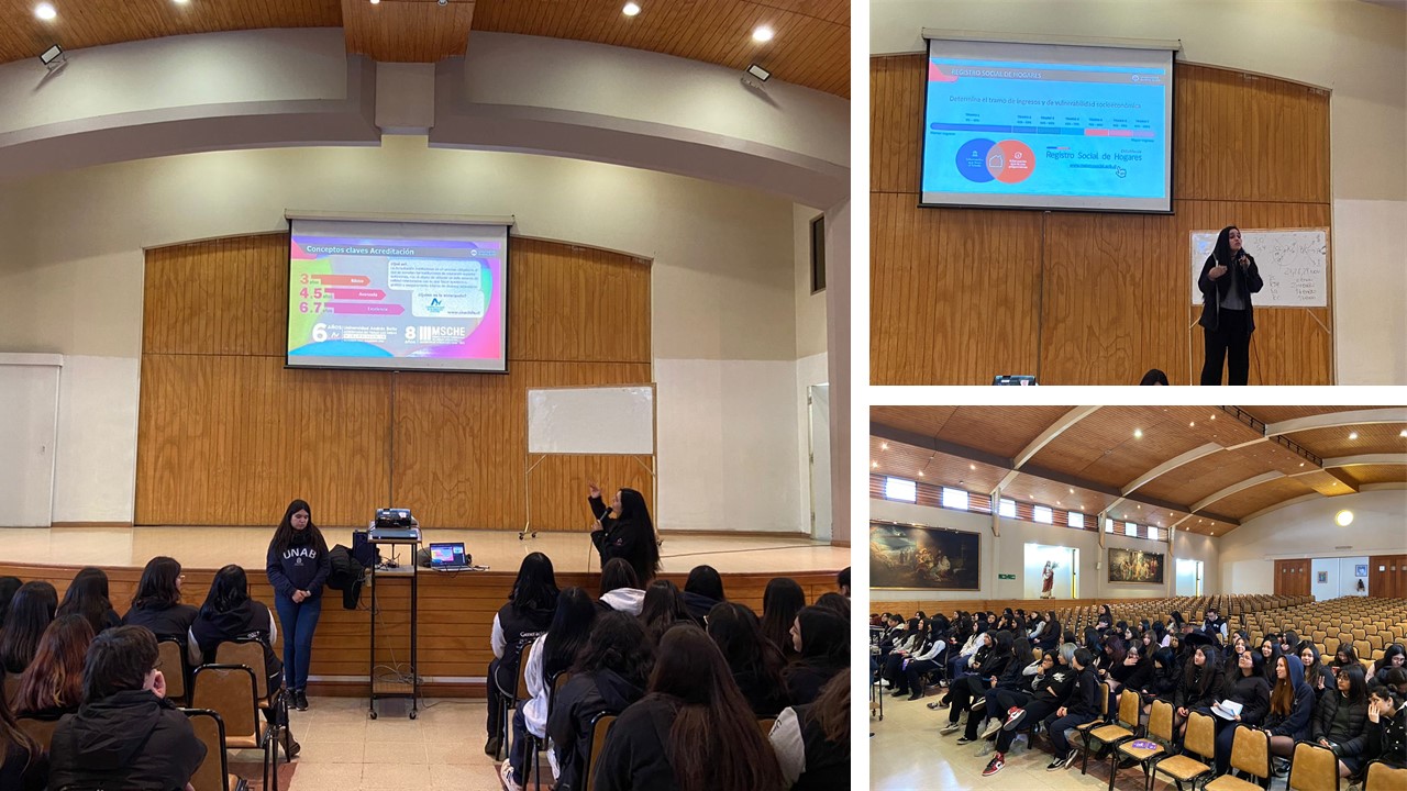 Continuando en el marco del plan de orientación vocacional, se realizó una charla del Sistema Único de Acceso a la Admisión Universitaria para los estudiantes de IV Medios, la cual fue realizada con el apoyo de la Coordinadora de Admisión y Difusión de la Universidad Andrés Bello, Amy Barrera.