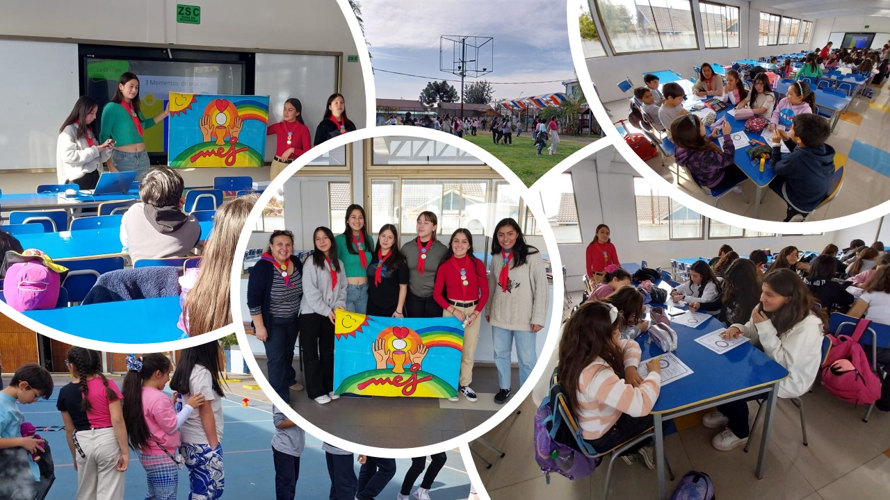 El miércoles 31 de Mayo, cerramos nuestro mes de aniversario, reactivando el trabajo del MEJ en nuestro Colegio. El MEJ es un Movimiento orientado al servicio de nuestros hermanos, Es Eucarístico, es decir, celebramos la amistad con Jesús y Él es el centro de lo que hacemos. Nuestras acciones tienen sentido en Él, es Juvenil, Jesús renueva nuestras vidas, nuestros corazones, haciéndonos “como niños”. Él nos anima con alegría en nuestra tarea. Este año lideran como monitoras, estudiantes de III Medio quienes han asumido el compromiso de formarse y acompañar a sus compañeros de 4° a 6°Básico. Agradecemos a nuestros estudiantes y sus familias su entusiasmo, alegría y participación.