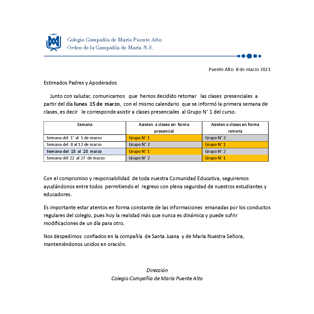 - Presentar el Proyecto Educativo y los focos de trabajo para este 2021 en las Áreas de Propuesta Evangelizadora, Académica y de Convivencia Escolar.