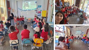 El día 22 de noviembre, los primeros básicos A y asistieron en la Biblioteca CRA, a escuchar el Cuento narrado "Dante, el Gigante", un gigante que llegó para generar conciencia sobre el valor y la importancia de cuidar nuestra casa común, "El planeta", el llamado va dirigido a los niños y niñas para generar cambios vitales, acompañado con otros valores como es el respeto a la diversidad, a lo diferente. Los niños participaron de la narración muy alertas, respondiendo a todas las preguntas y reflexionando acerca de nuestros propios comportamientos.
