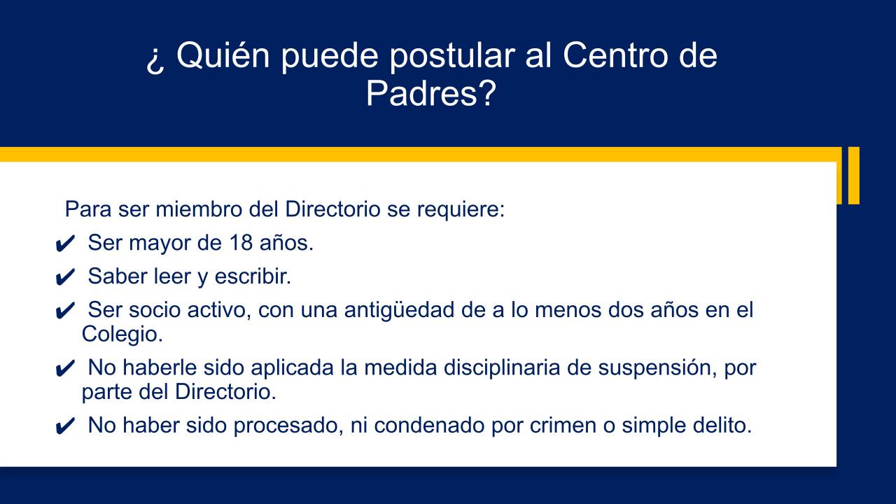 Invitamos a todos nuestros apoderados a reactivar el espíritu comunitario que nos caracteriza participando activamente en la elección de un nuevo Centro de Padres para nuestro Colegio.