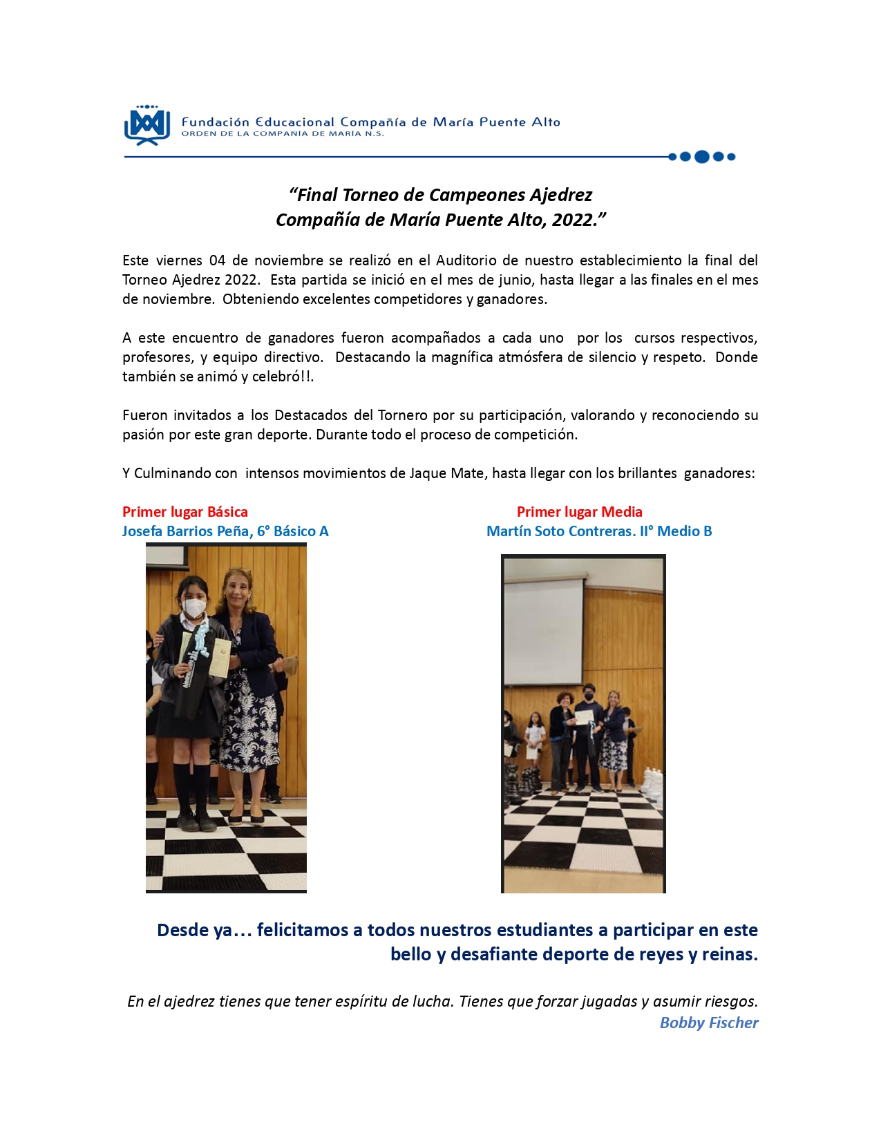 Final Torneo de Campeones Ajedrez Compañía de Maria Puente Alto, 2022.