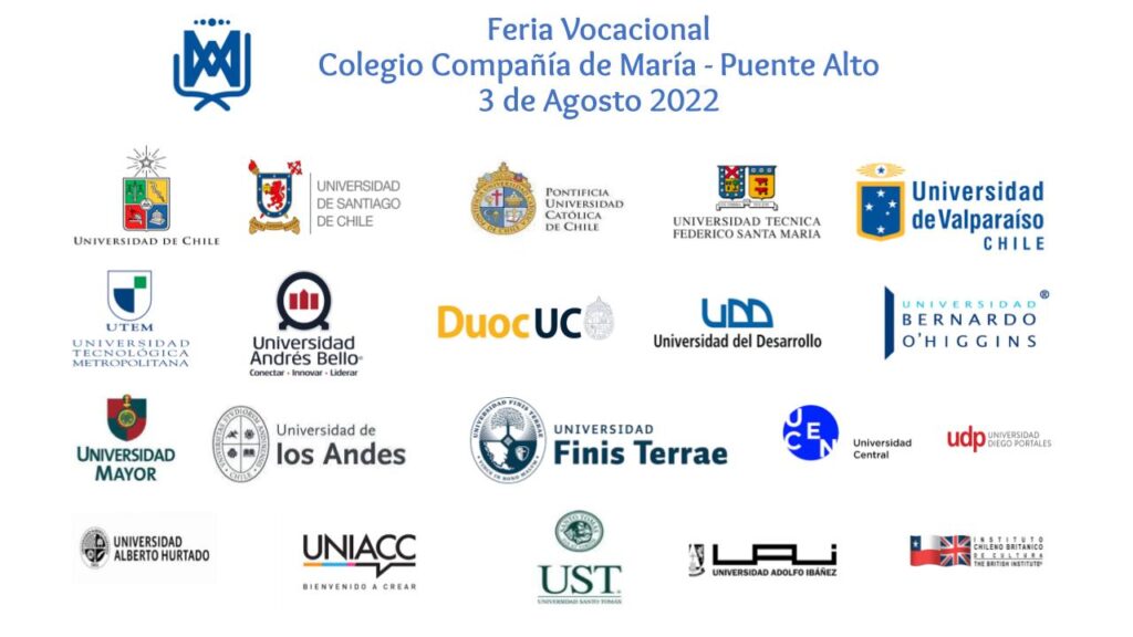 A poco tiempo de la rendición de la prueba para el ingreso de la educación superior, el colegio Compañía de María realizará la primera feria vocacional del año 2022, donde participan diferentes instituciones educativas , esta actividad ayudará a nuestros jóvenes a resolver sus dudas en relación a las carreras de interés y otras temáticas relacionadas al proceso de admisión, estos espacios tienen como objetivo principal entregar instancias de información y diálogo , por lo que el dia miercoles 3 de agosto se realizará la feria vocacional destinada a los estudiantes del establecimiento, donde esperamos motivar y orientar a los jóvenes sobre su futuro.