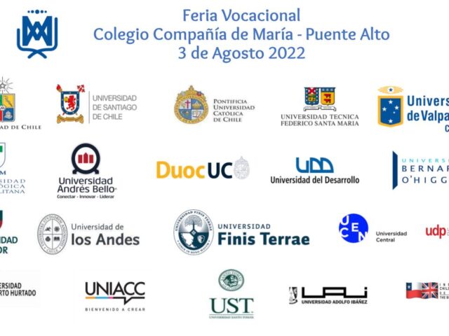 A poco tiempo de la rendición de la prueba para el ingreso de la educación superior, el colegio Compañía de María realizará la primera feria vocacional del año 2022, donde participan diferentes instituciones educativas , esta actividad ayudará a nuestros jóvenes a resolver sus dudas en relación a las carreras de interés y otras temáticas relacionadas al proceso de admisión, estos espacios tienen como objetivo principal entregar instancias de información y diálogo , por lo que el dia miercoles 3 de agosto se realizará la feria vocacional destinada a los estudiantes del establecimiento, donde esperamos motivar y orientar a los jóvenes sobre su futuro.