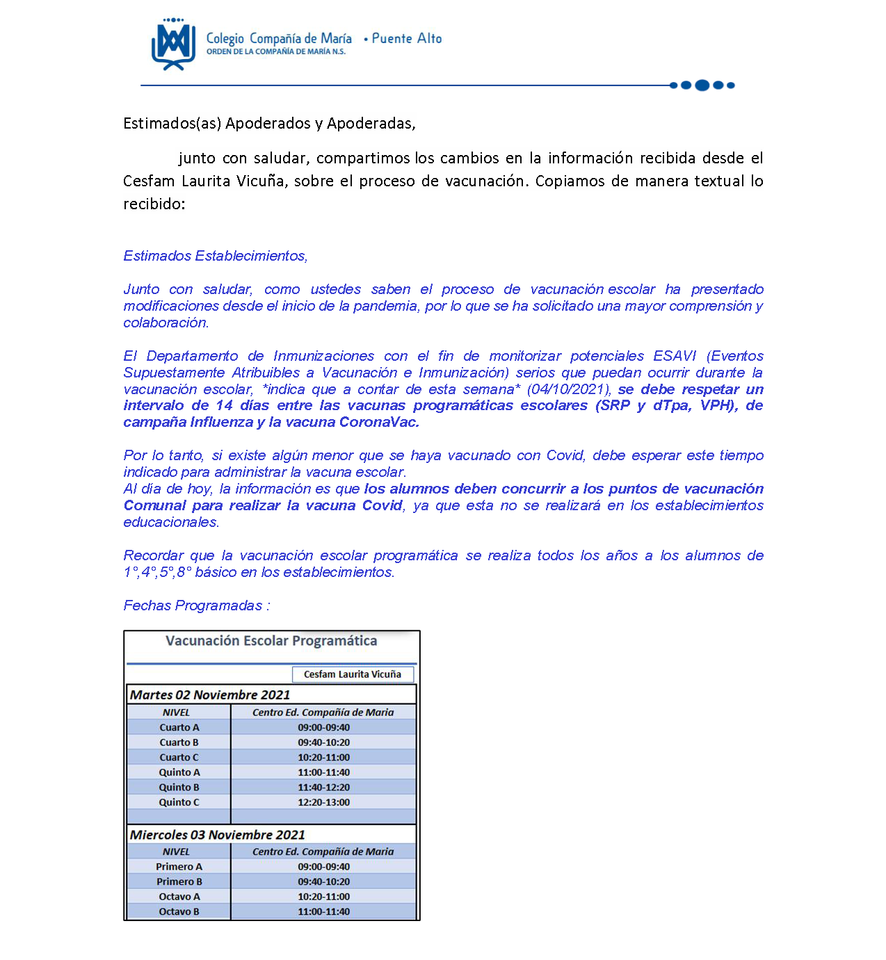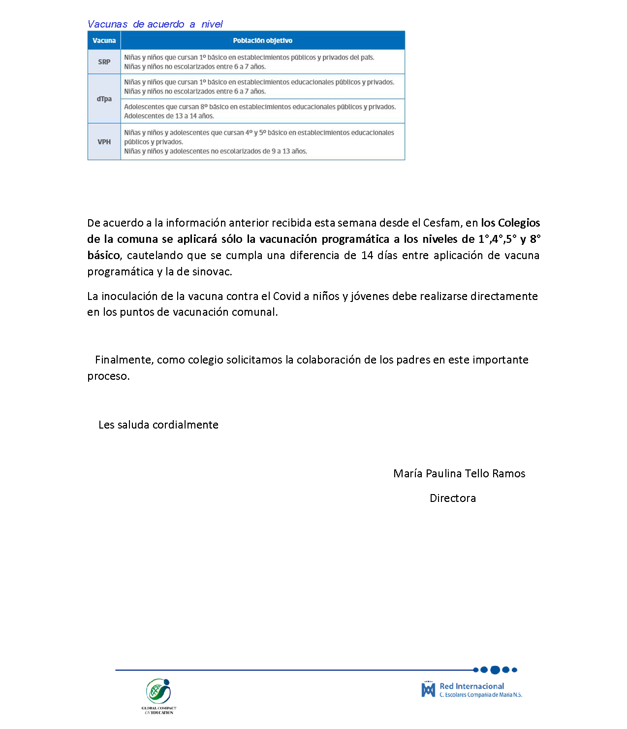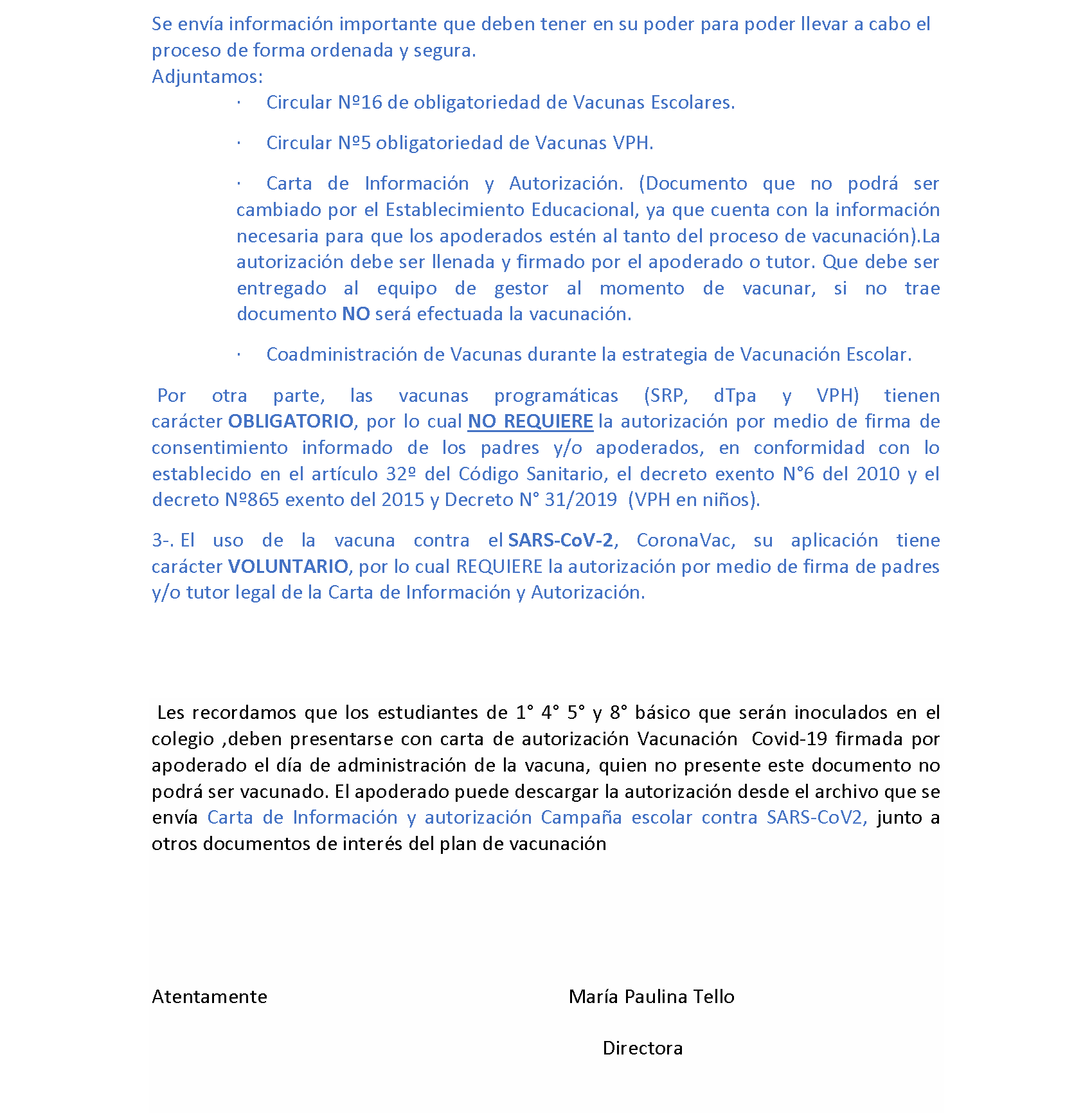 - Comunicado padres y apoderados vacunación escolar 2021